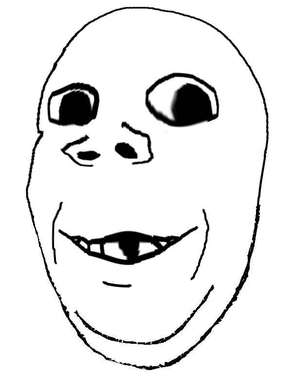 Drawn off the Wholesome Soyjak template with shaky lines and a strange smile,